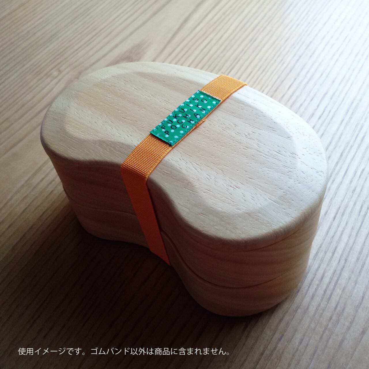 鮮やかなオレンジのゴムにポチ子ちゃんのタグが縫い付けられたゴムバンド。手帳やノート、絵の具箱やお弁当箱などにお使いいただけます。